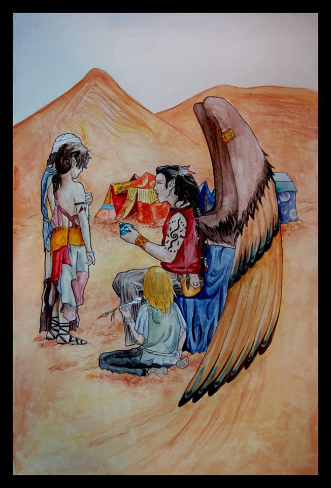 "Teacher" was inspired by a picture I took at Faerieworlds of one of the vendors teaching a group of young boys about the stones he had at his booth.